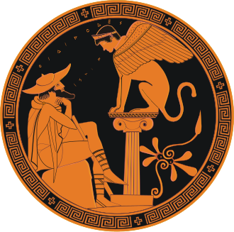 Als die Nachricht vom Tod des Laios in Theben eintraf, übernahm Kreon, der Bruder der Königin, die Regierungsgeschäfte. Theben hatte zu dieser Zeit ein großes Problem mit dem Straßenverkehr: die wichtigste Zufahrtstraße wurde von einer Sphinx verstopft, die jeden Reisenden mit einer schwierigen Quizfrage belästigte, so dass die Pendler nicht mehr pünktlich zur Arbeit kamen. Auch die Umleitungen waren überlastet. Kreon war mit diesem Problem überfordert und setzte einfach eine Belohnung aus: wer die Sphinx besiegen könne, solle seinetwegen neuer König werden und auch gleich die Iokaste zur Frau bekommen.