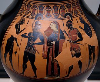 Menelaos und Helena bekamen Besuch von Paris aus Troja, das war so eine Art männliche Paris Hilton seiner Zeit, ein unglaublicher Lackaffe, dem alle Frauen auf den Leim gingen. Während er im Palast ein und aus ging, musste Menelaos plötzlich weg, weil sein Großvater Katreus gestorben war (siehe oben, die Prophezeiung hatte auch ihn letzten Endes erwischt). Helena hatte keine Lust auf eine Beerdigung und machte sich stattdessen mit Paris ein paar schöne Nachmittage. Als Paris schließlich abreiste, hatte er neben seinen T-shirts und Badesachen zufällig auch Helena mit im Gepäck.